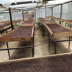 After processing, the coffee is transferred to an exclusive drying area, where it undergoes meticulous monitoring to achieve optimal consistency and complexity. A final round of sorting eliminates any imperfections, guaranteeing a cup that meets the highest standards.This lot is from Juan's Typica Mejorado trees, fermented in plastic tanks without oxygen for 5 days, or 120 hours. These plastic tanks are kept very clean but fermentation juices are added from previous anaerobic batches, in a similar concept to a sourdough starter, in order to kickstart the fermentation with an existing culture of bacteria and yeast, pushing in the desired direction and leading to greater consistency. This fermentation enhances the mouthfeel and acidity of the Typica, while maintaining an incredibly clean and juicy expression. A testament to Juan's meticulous work throughout the production process.